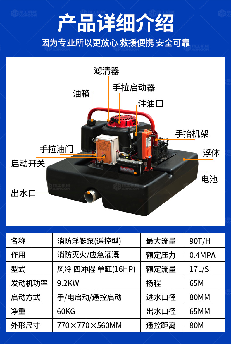 浮艇泵是一种便携式水上抽水设备,专为消防、排涝设计。采用漂浮结构,可快速部署于河流、池塘等水源,抽水流量大(30-200m³/h),压力稳定,适应复杂环境。轻便灵活,操作简单,适用于消防灭火、抗旱灌溉及应急排水,是野外作业和灾害救援的高效装备...