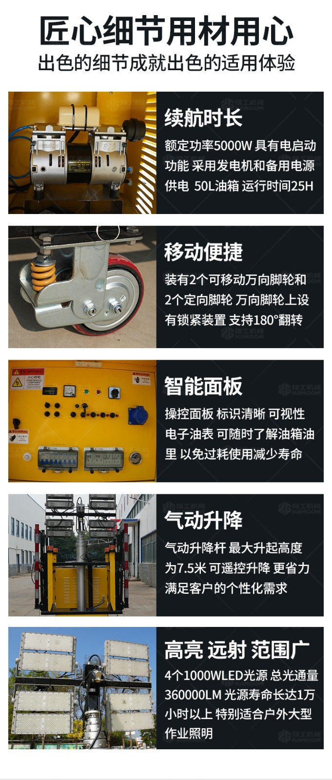 自卸式移动照明车集照明、自卸功能于一体,采用高效LED光源,照明范围广,亮度可调。配备液压自卸系统,可快速卸货或调整设备高度,适用于工地抢险、夜间作业等场景。移动灵活,坚固耐用,支持市电/发电机双模式供电,适应恶劣环境。是工程应急、物流装卸等多功能照明解决方案。...